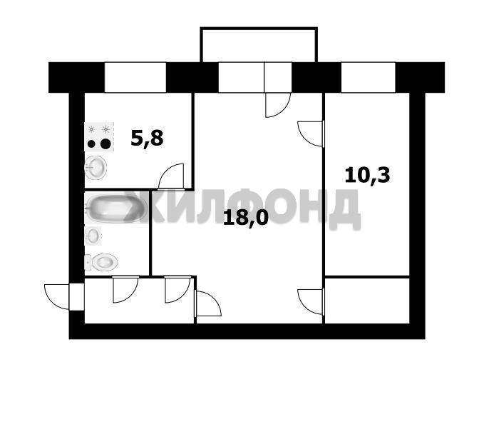 Общая площадь 43,8 кв. м., имеется балкон.