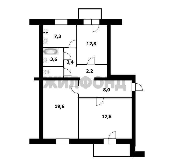 - Кухня: 7,3 кв. м, удобная для организации зоны приготовления пищи и приема гостей.